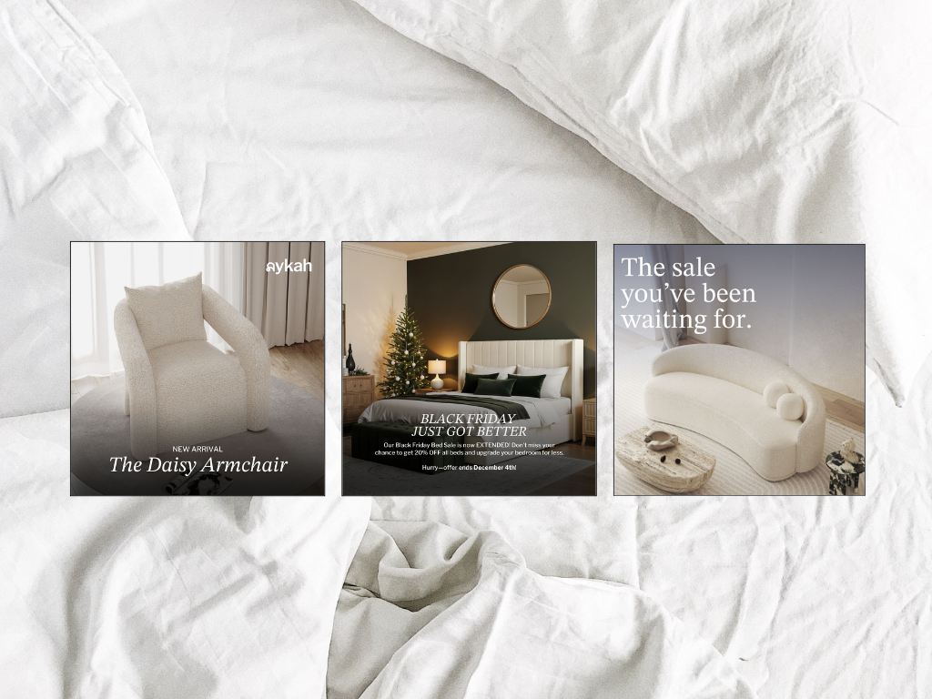 Website copywriting, social media strategy, and content creation for Aykah Furniture – a contemporary furniture brand that exists to bring happiness home.